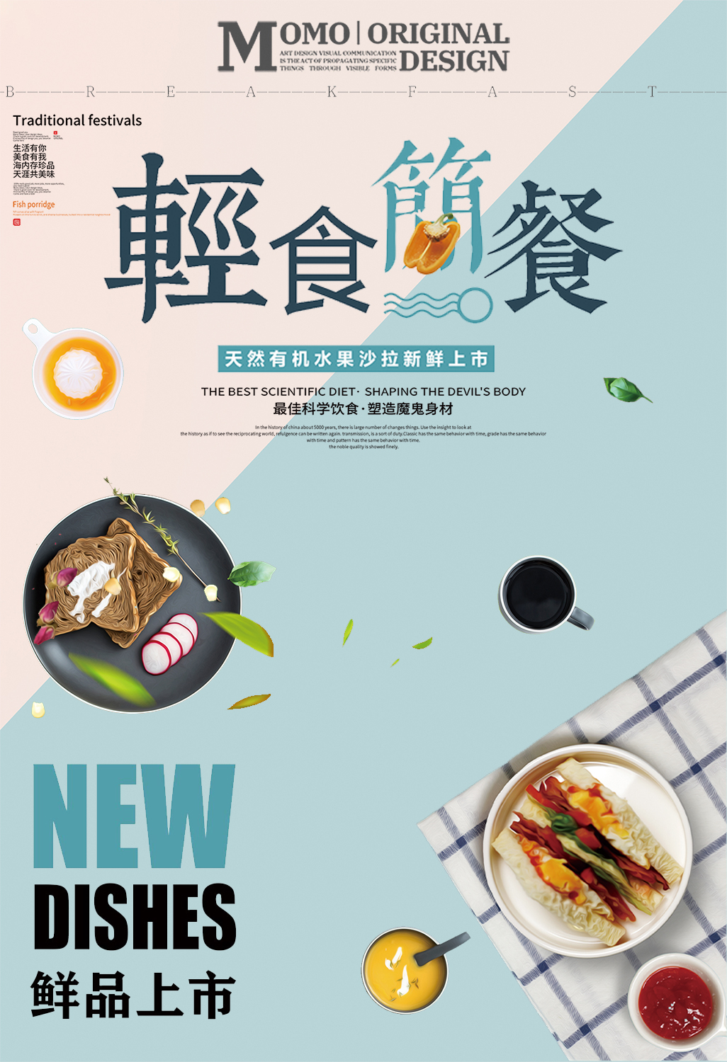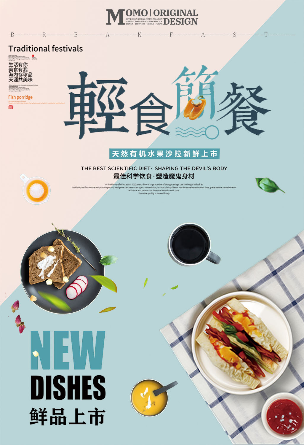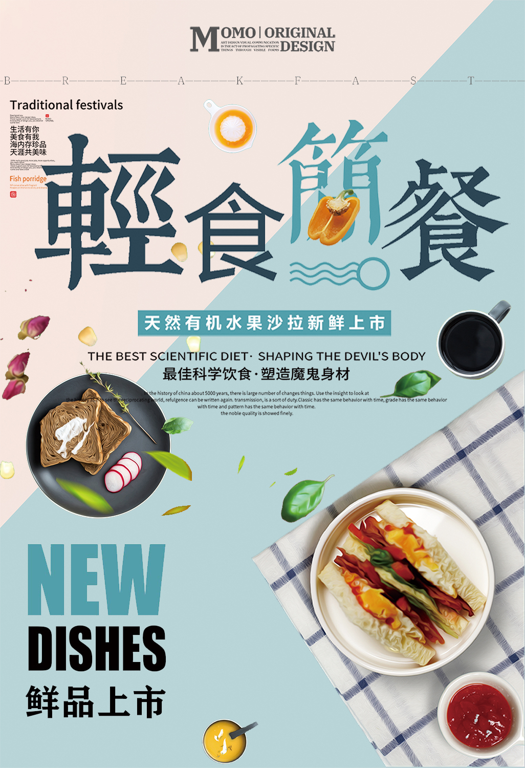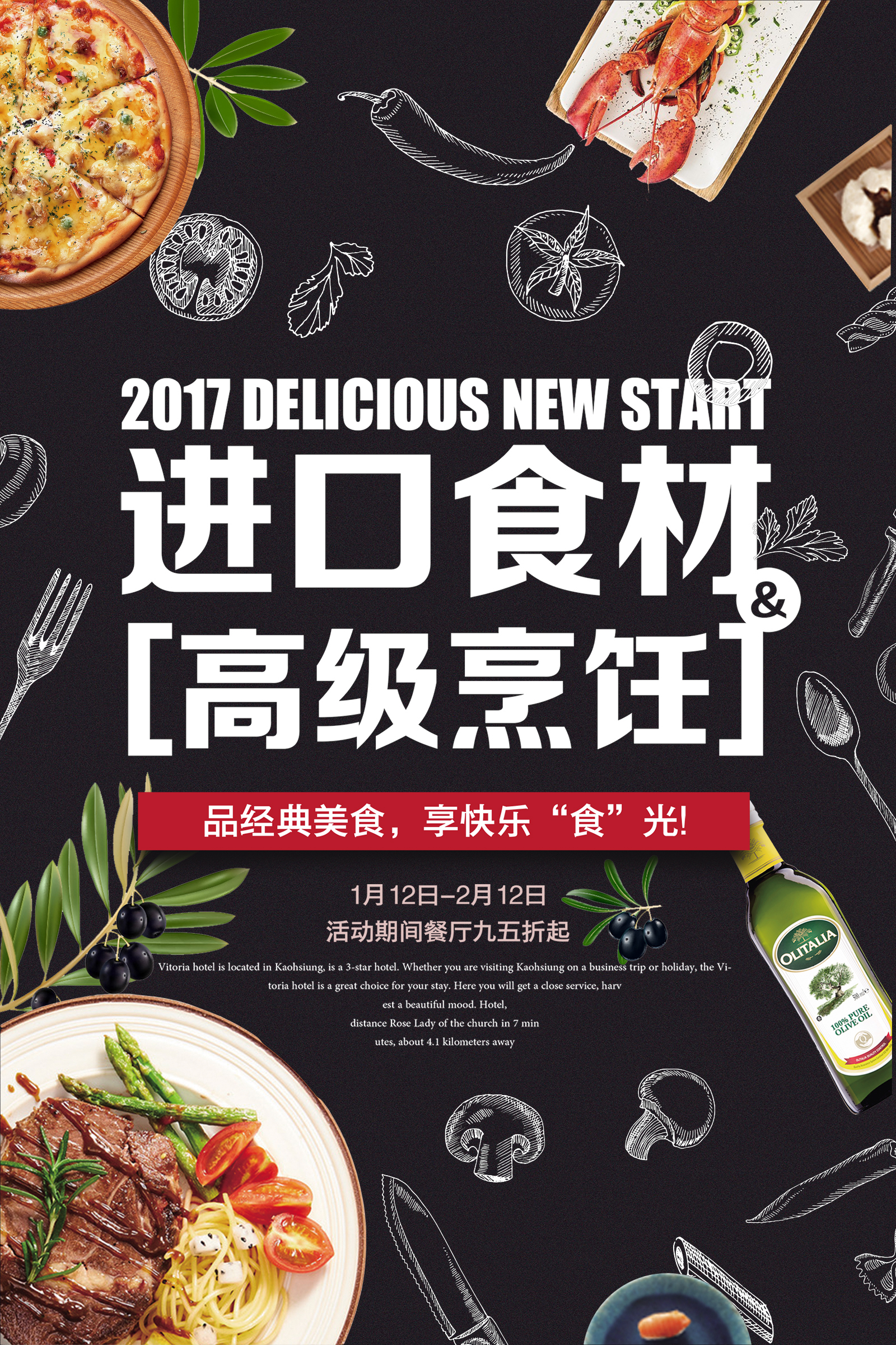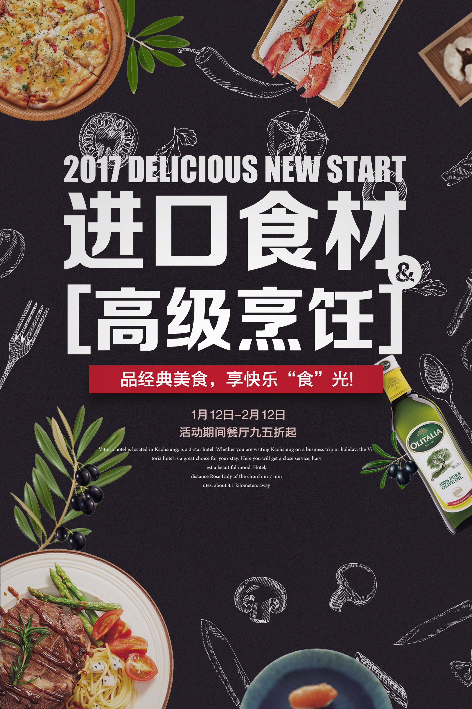 作业要求:1.扣取干净不留背景杂色保留素材本身结构(注意“橄榄1”素材,保留高光) 2.注意图层素材之间的前后遮挡关系(文字优先显示) 3.素材比例大小合适,位置恰当,不要变形