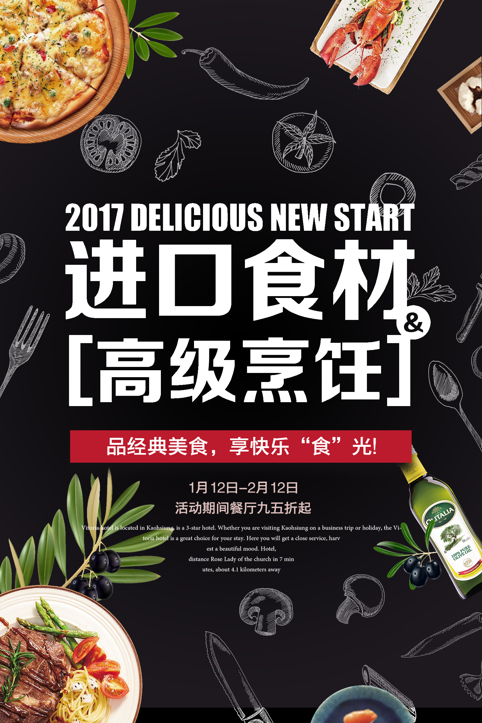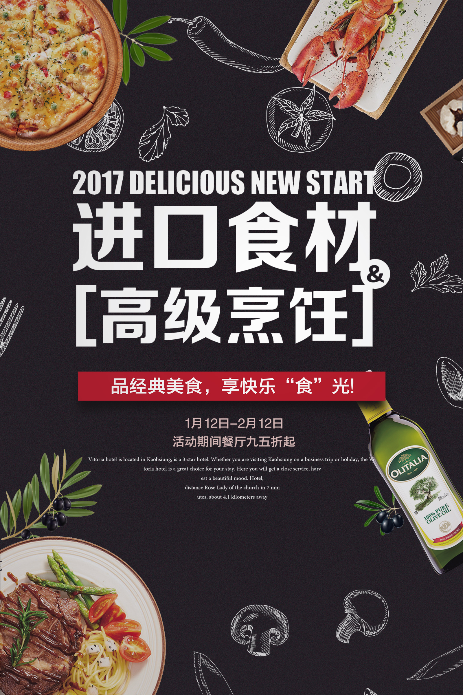 作业要求:1.扣取干净不留背景杂色保留素材本身结构(注意“橄榄1”素材,保留高光) 2.注意图层素材之间的前后遮挡关系(文字优先显示) 3.素材比例大小合适,位置恰当,不要变形