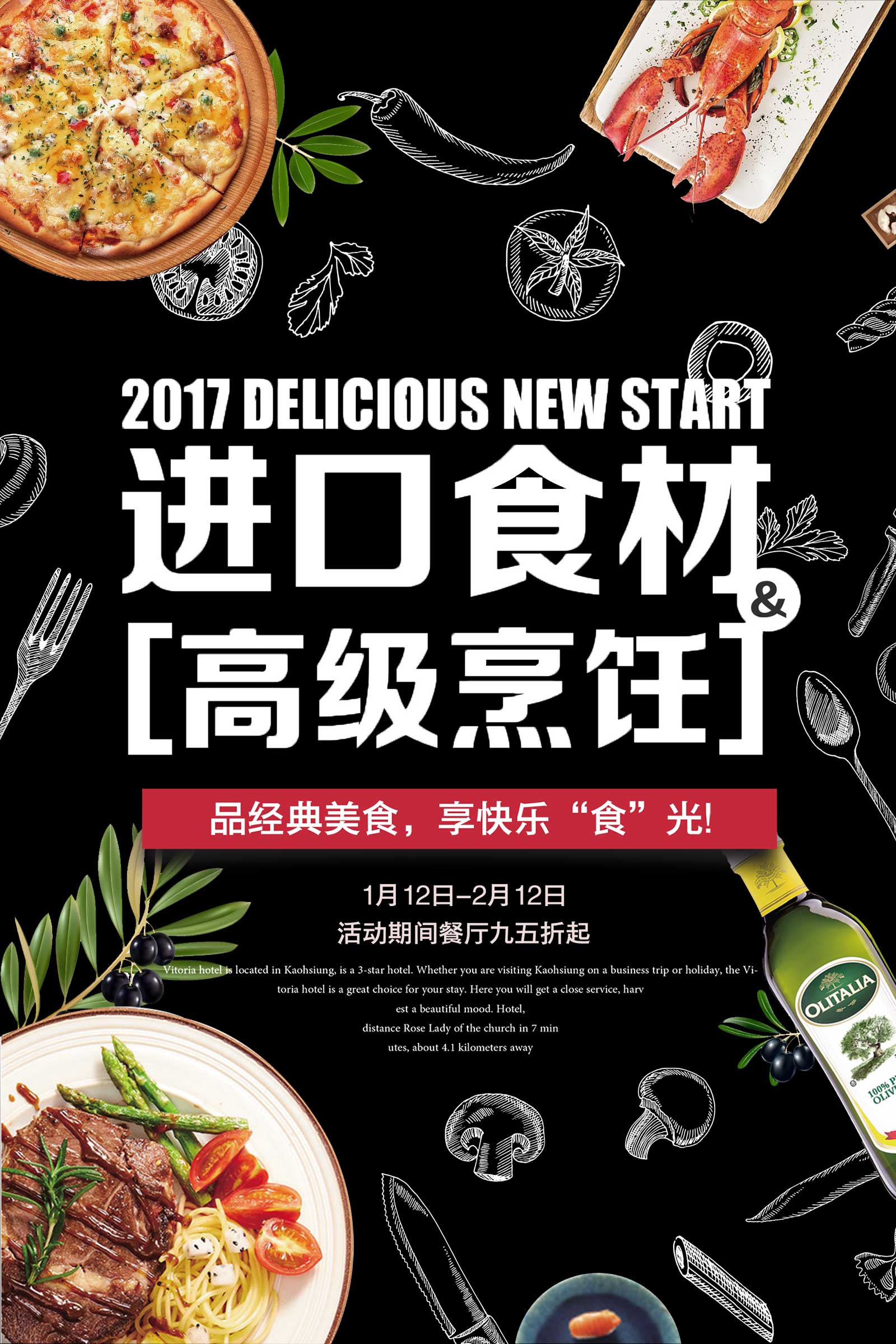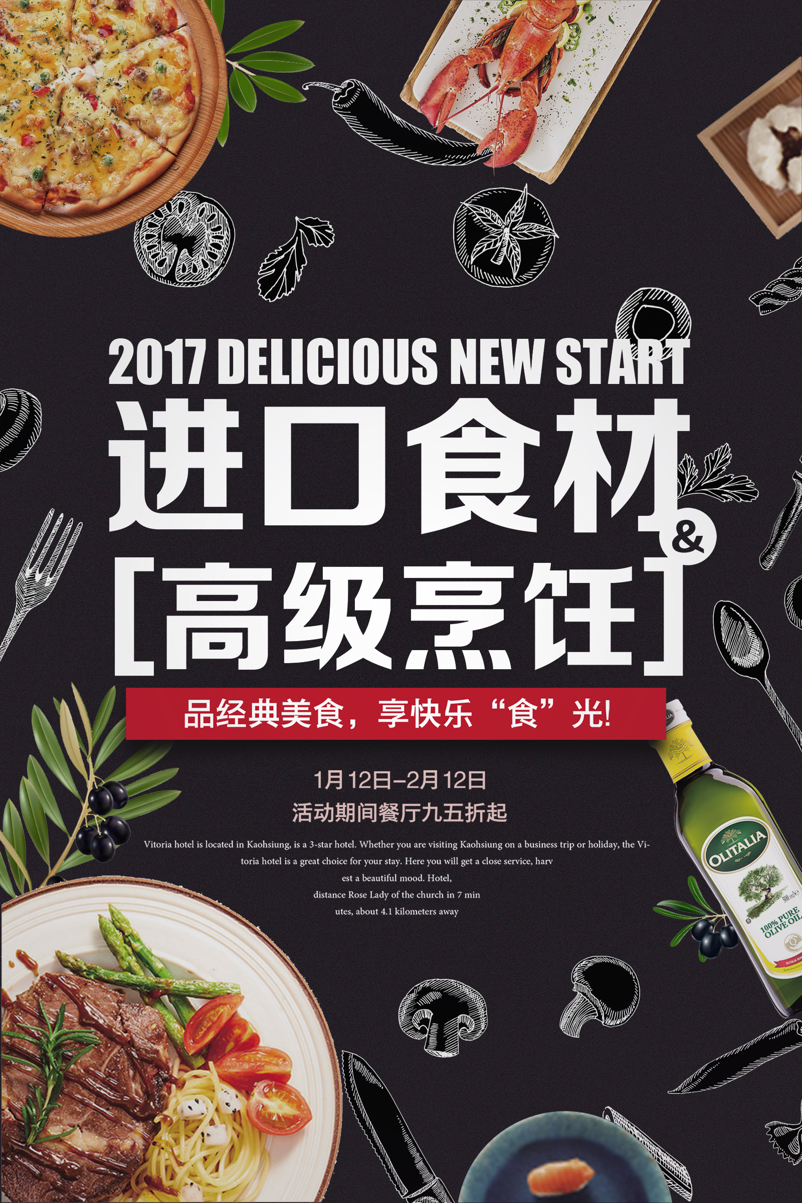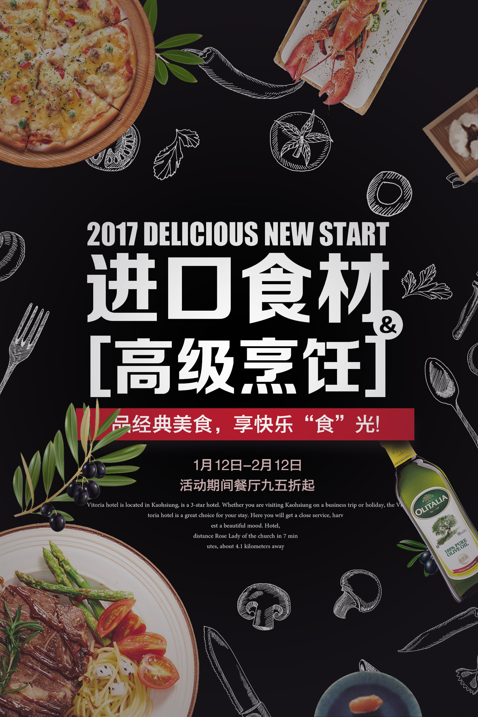 作业要求:1.扣取干净不留背景杂色保留素材本身结构(注意“橄榄1”素材,保留高光) 2.注意图层素材之间的前后遮挡关系(文字优先显示) 3.素材比例大小合适,位置恰当,不要变形