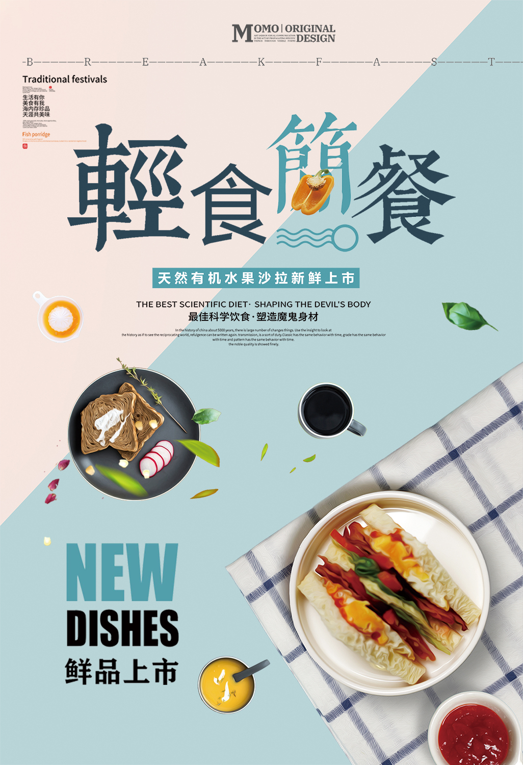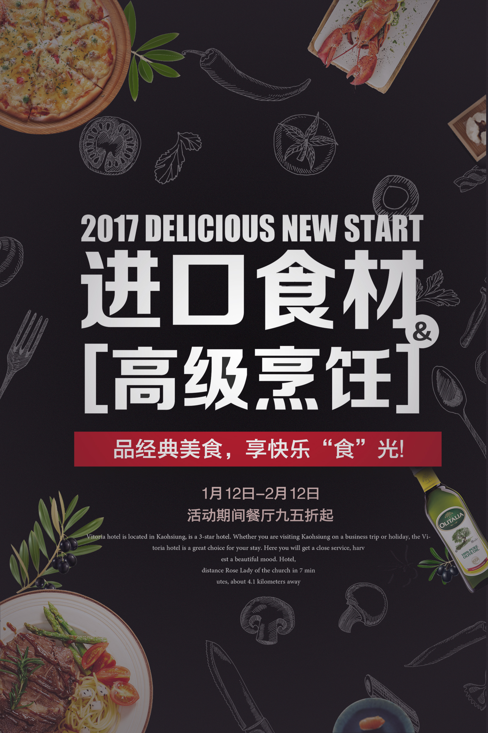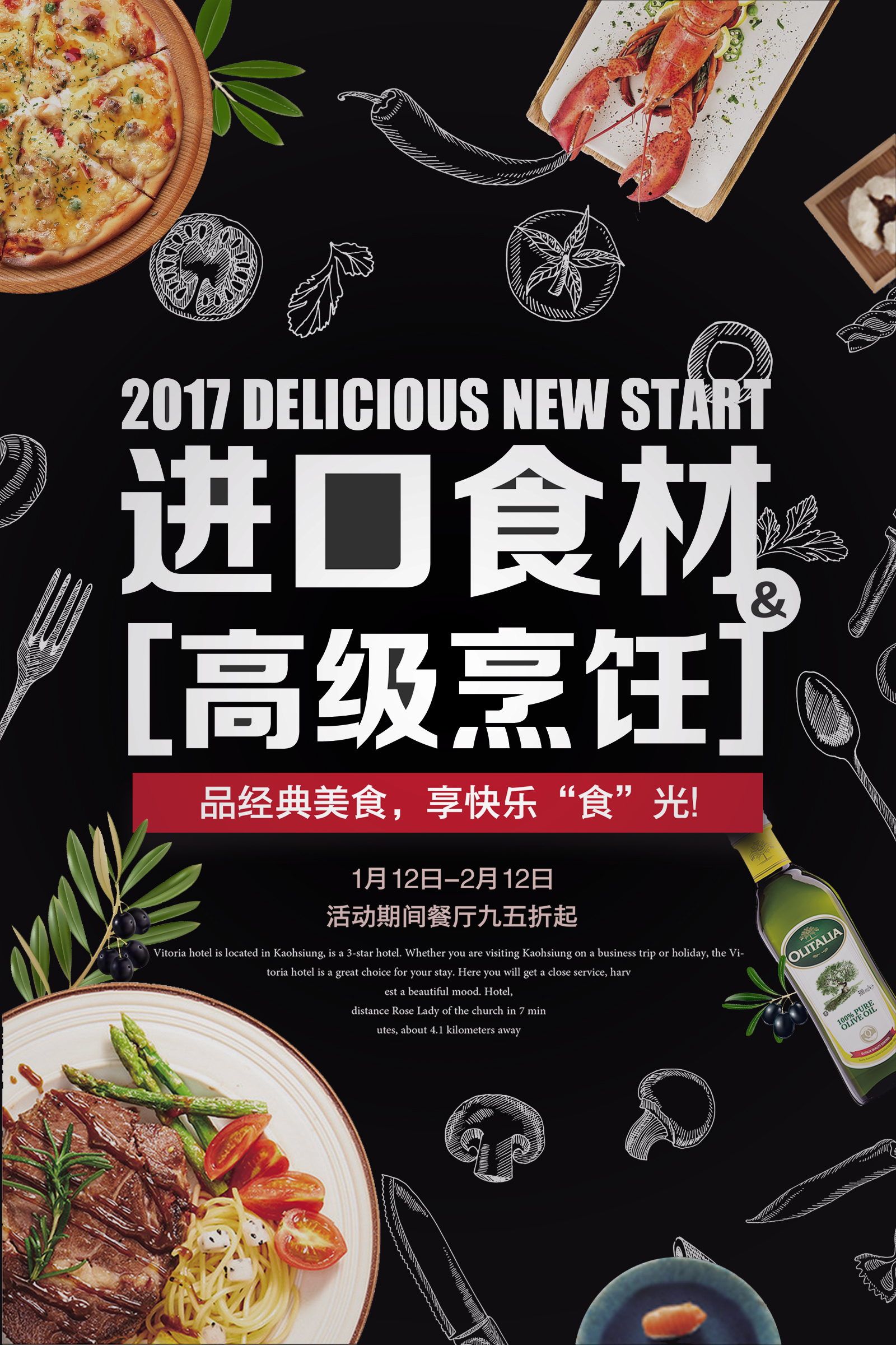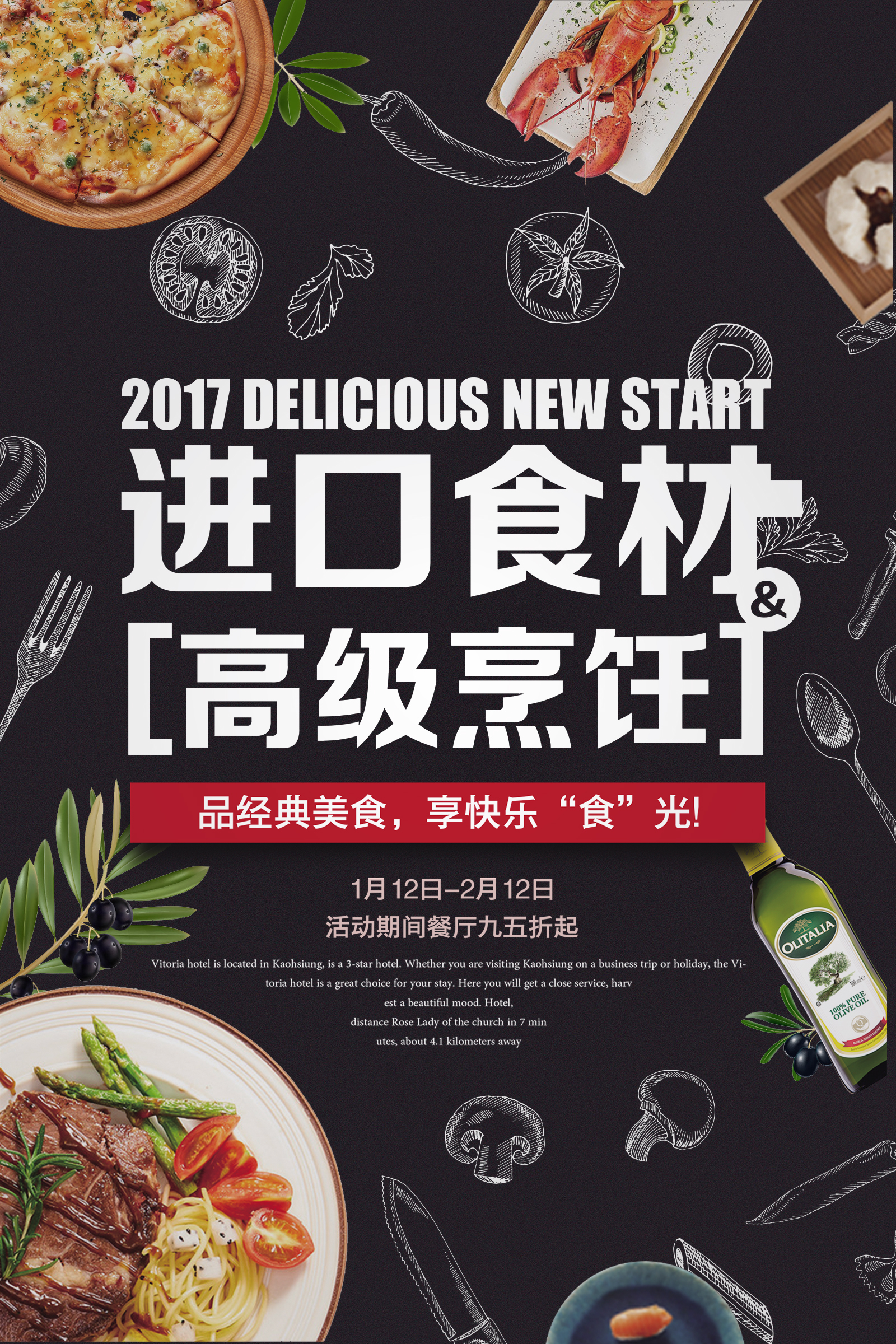 作业要求:1.扣取干净不留背景杂色保留素材本身结构(注意“橄榄1”素材,保留高光) 2.注意图层素材之间的前后遮挡关系(文字优先显示) 3.素材比例大小合适,位置恰当,不要变形